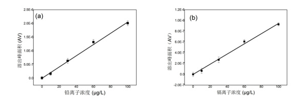 图3(a)铅离子标准曲线;(b)镉离子标准曲线